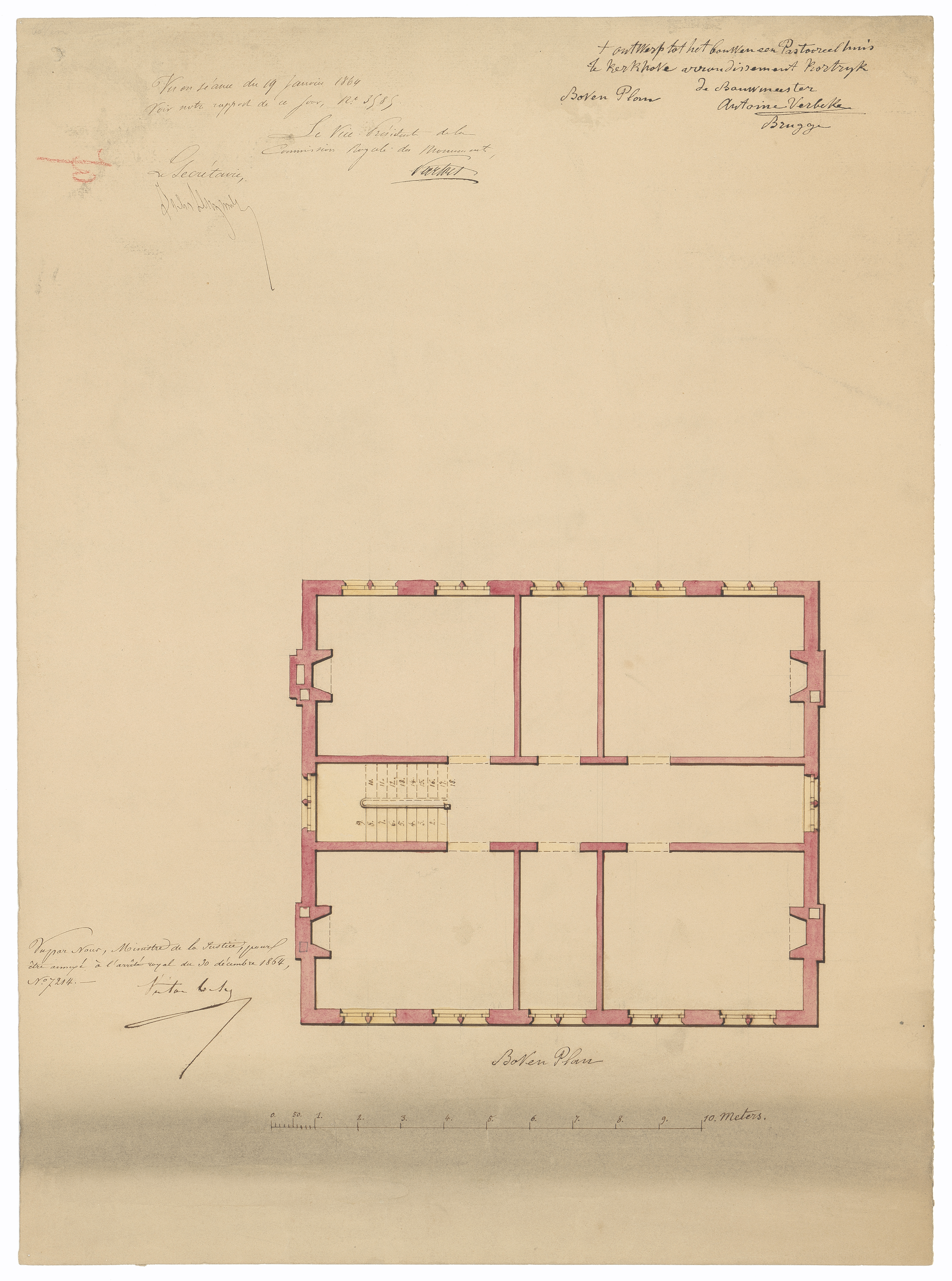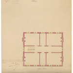Opschrift: Ontwerp tot het bouwen een Pastoreelhuys te Kerkhove arrondissement Kortrijk Omschrijving plan: plattegrond niveau 1 Datum KCML: 19/01/1864 Archiefnummer: W0082