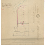 Opschrift: Plan figuratif d'une propriété en partie batie, située à Molendorp (Breedene) achetée par la fabrique d'église du dit Molendorp à Monsieur Pierre Debreyne d'Ostende et sur la quelle on propose de construire une église, Omschrijving plan: situatieplan Datum KCML: deze informatie wordt niet vermeld op het archiefstuk Archiefnummer: W0158