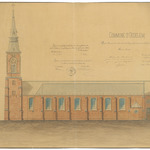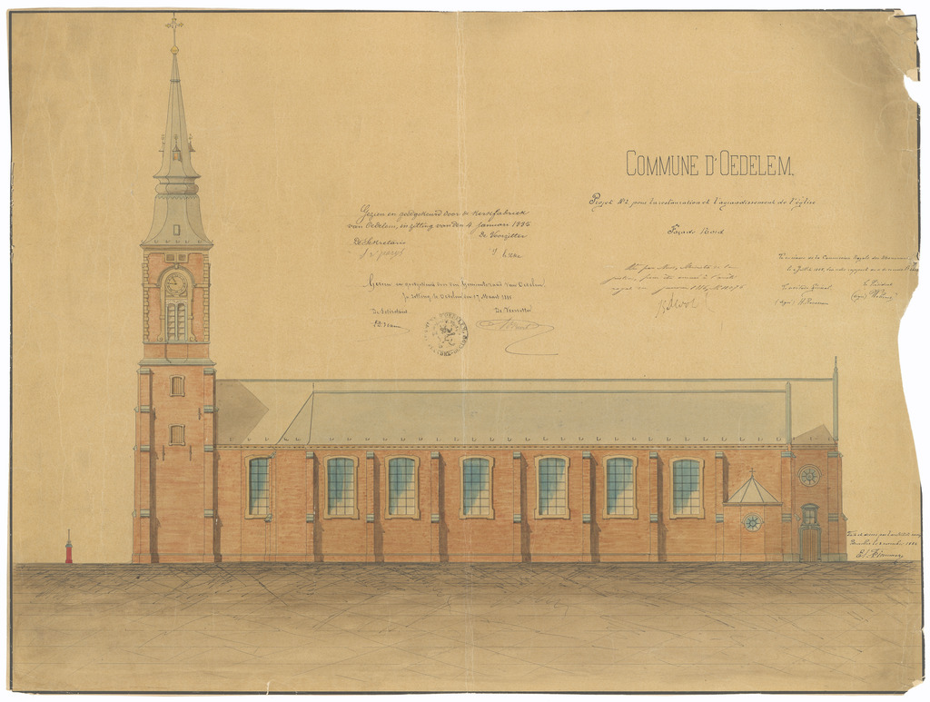 Opschrift: Commune d'Oedelem. Projet N° 2 pour l'agrandissement et la restauration de l'Eglise. Omschrijving plan: opstand N-gevel Datum KCML: 04/07/1885 Archiefnummer: W0110