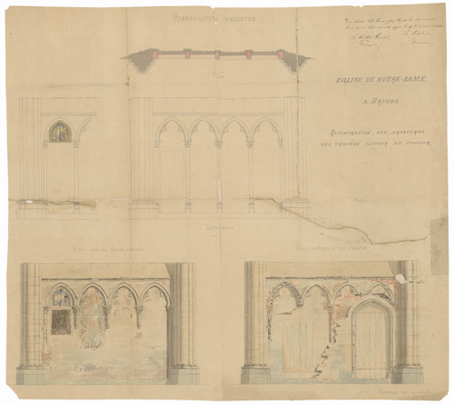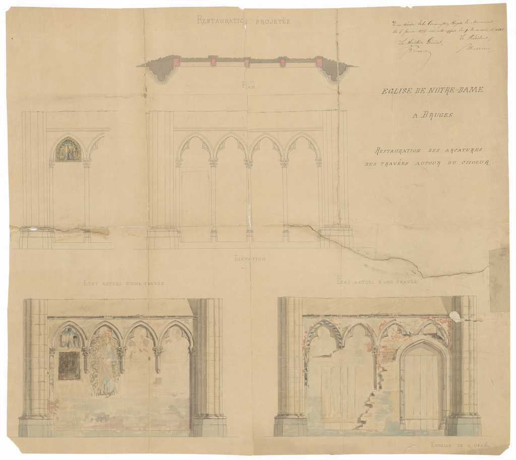 Opschrift: Eglise de Notre-Dame à Bruges. Restauration des arcatures des travées autour du choeur. Omschrijving plan: restauratie van de gewelven rond het koor Datum KCML: 06/01/1877 Archiefnummer: W0187