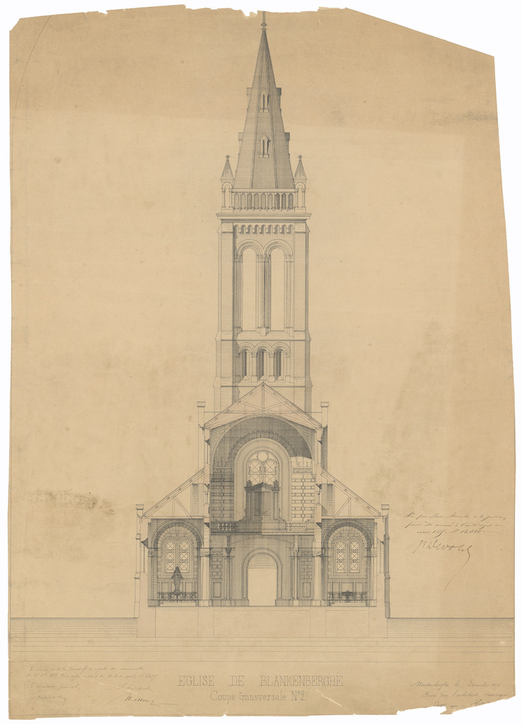 Opschrift: Eglise de Blankenberghe. Coupe transversale n° 2. Omschrijving plan: dwarsdoorsnede Datum KCML: 17/11/1877 Archiefnummer: W0122