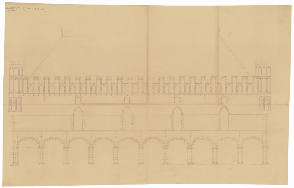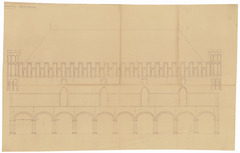 Opschrift: Gaanderij achtergevel Omschrijving plan: opstand achtergevel Datum KCML: deze informatie wordt niet vermeld op het archiefstuk Archiefnummer: W0177