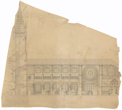 Opschrift: Eglise de Blankenberghe. Coupe longitudinale. Omschrijving plan: langsdoorsnede Datum KCML: 17/11/1877 Archiefnummer: W0120
