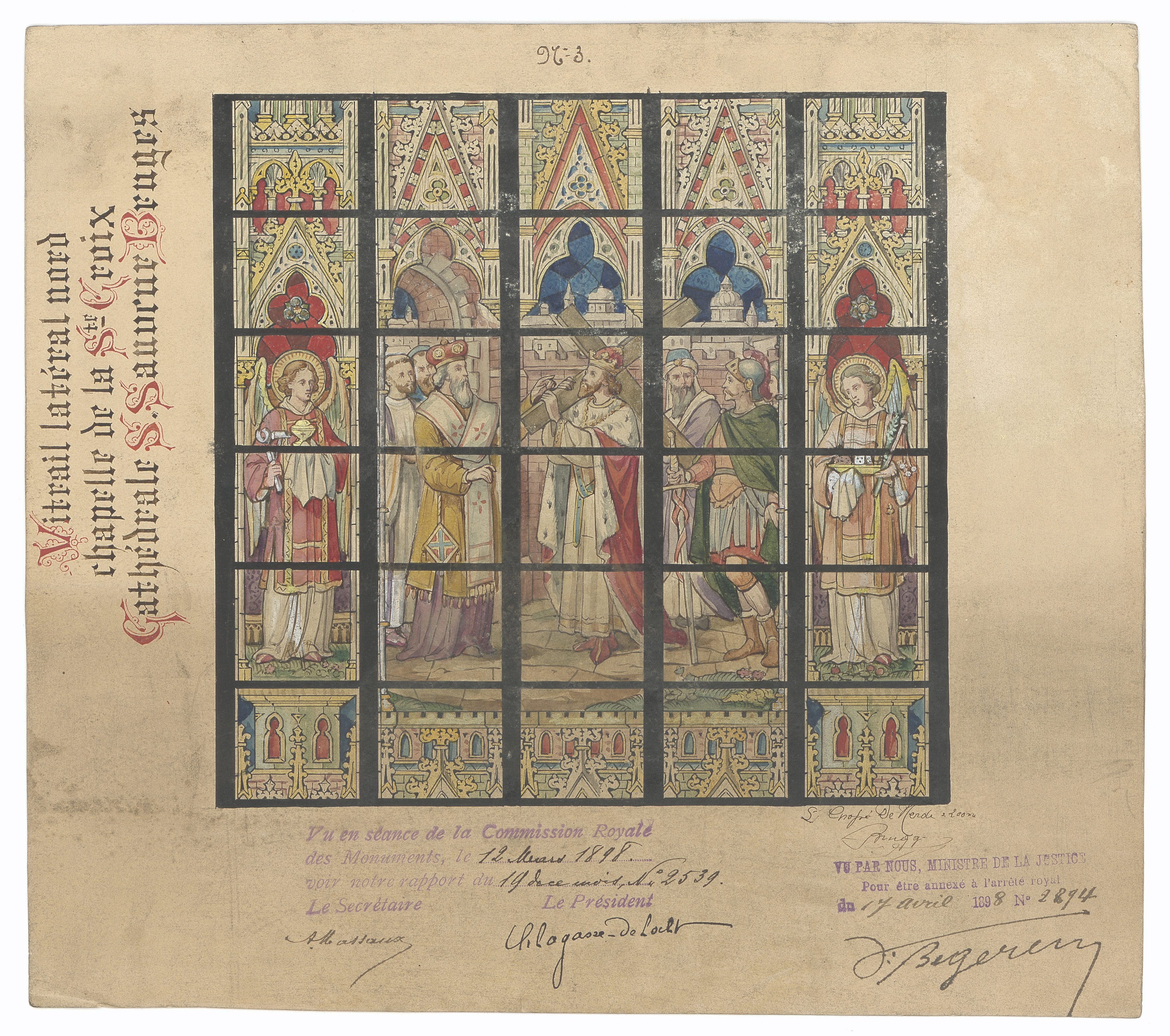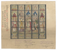 Opschrift: Vitrail latéral nord chapelle de la Ste. Croix. Cathédrale S.Sauveur Bruges. Omschrijving plan: ontwerp glasraam Datum KCML: 12/03/1898 Archiefnummer: W0231