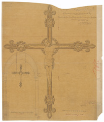 Opschrift: Parochiale kerk van O.L.Vrouw te Lisseweghe. Ontwerp voor de Kerkmeubelen. Kruis onder den triomfboog aan den ingang van den Koor. Omschrijving plan: ontwerp kruisbeeld Datum KCML: 20/10/1894 Archiefnummer: W0291