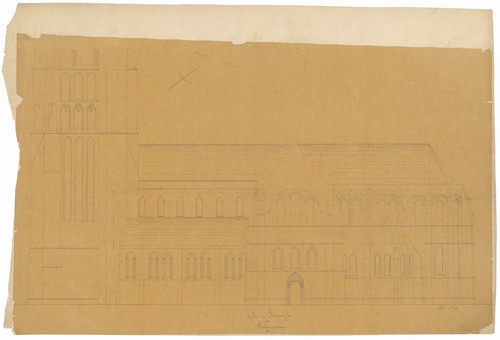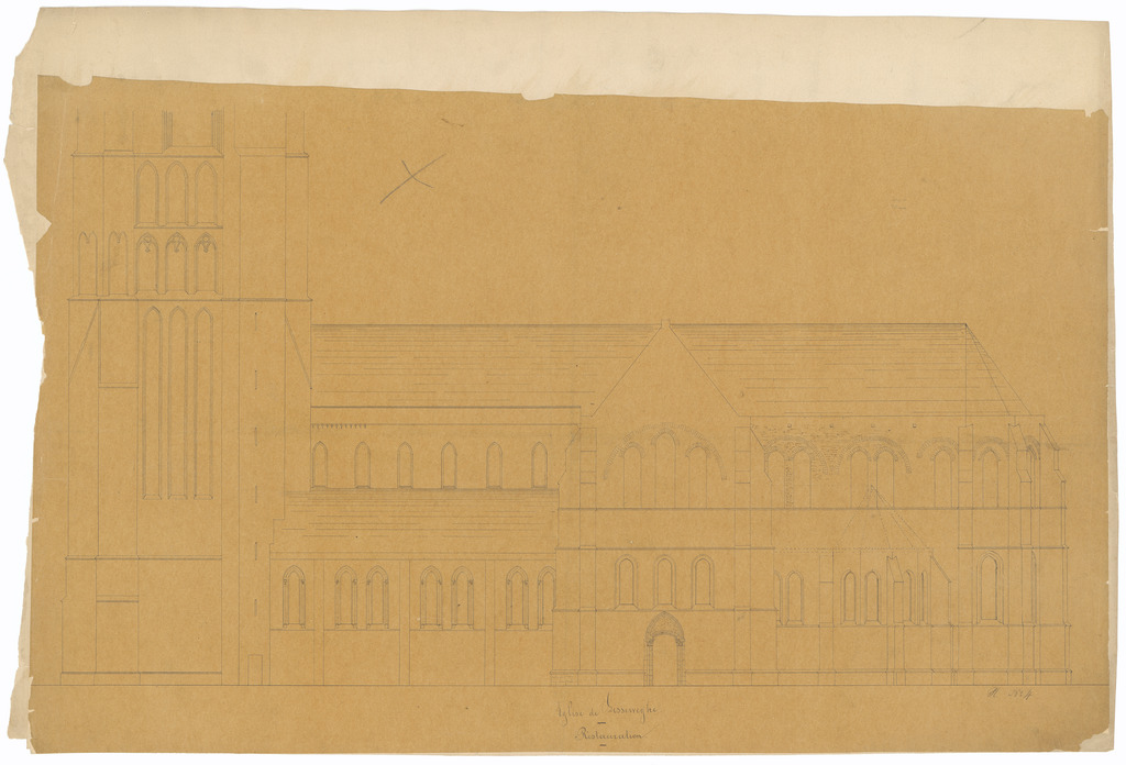 Opschrift: Eglise de Lisseweghe. Restauration Omschrijving plan: opstand zijgevel 1 Datum KCML: deze informatie wordt niet vermeld op het archiefstuk Archiefnummer: W0276