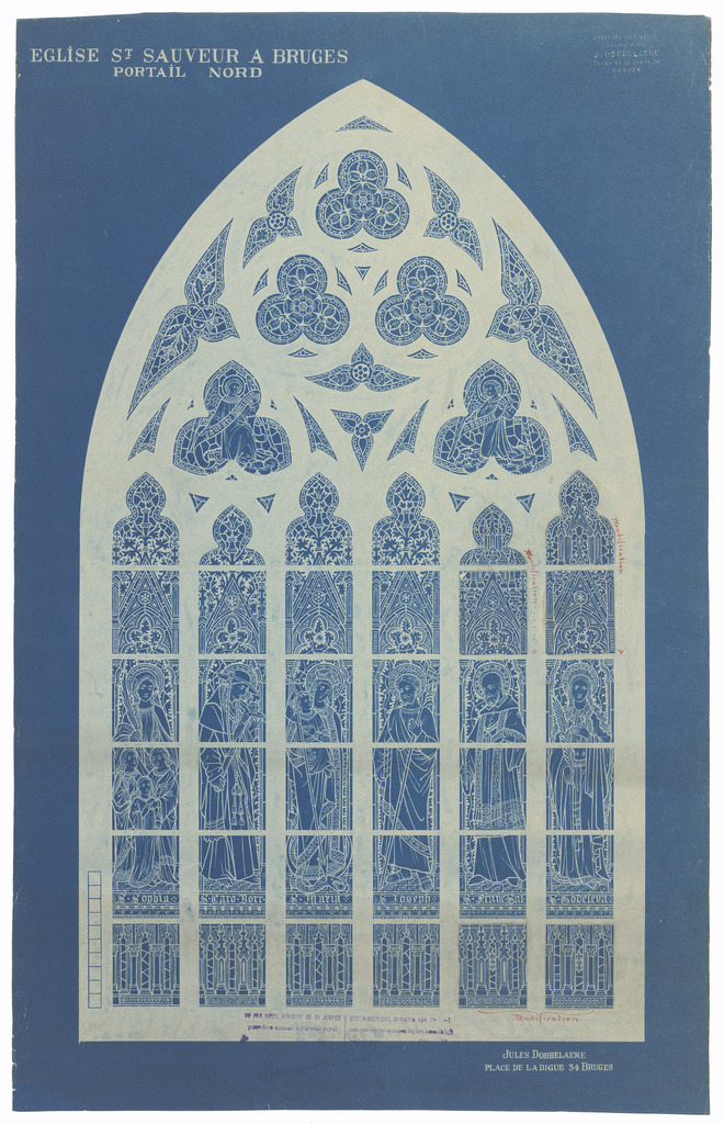 Opschrift: Eglise St. Sauveur à Bruges. Portail Nord Omschrijving plan: ontwerp glasraam Datum KCML: deze informatie wordt niet vermeld op het archiefstuk Archiefnummer: W0246