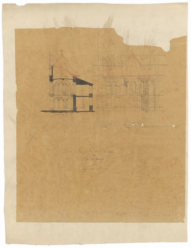 Opschrift: Province de la Flandre Occidentale. Eglise de Lisseweghe. Restauration Omschrijving plan: doorsnede en opstand zijkapel Datum KCML: deze informatie wordt niet vermeld op het archiefstuk Archiefnummer: W0280