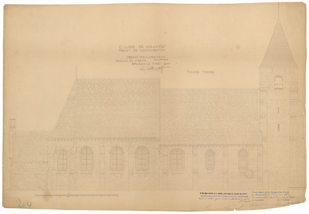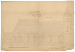 Opschrift: Eglise de Houcke. Projet de restauration Omschrijving plan: opstand N-gevel Datum KCML: 5-1-1901 Archiefnummer: W0344