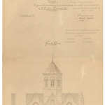 Opschrift: Province de Flandre Occidentale. Arrondissement de Bruges. Commune de Wenduÿne. Projet d'agrandissement et restauration de l'Eglise paroissiale. Omschrijving plan: opstand voorgevel Datum KCML: 3-6-1905 Archiefnummer: W0382