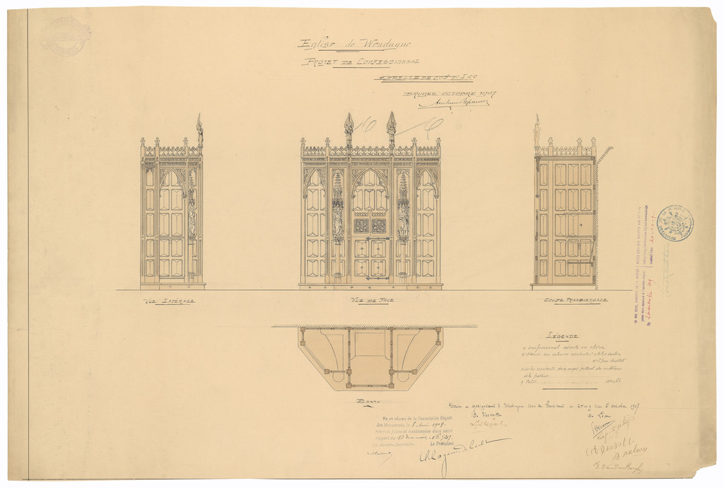 Opschrift: Eglise de Wenduyne. Projet de confessional Omschrijving plan: ontwerp biechtstoel Datum KCML: 8-5-1909 Archiefnummer: W0390