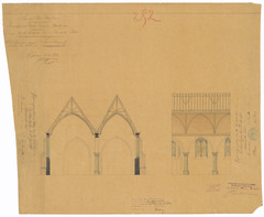 Opschrift: Provintie West-Vlaanderen. Arrondissement Thielt - Gemeente Marckeghem. Ontwerp tot het herstellen der Parochiale Kerk Omschrijving plan: dwarsdoorsnede Datum KCML: 11/03/1893 Archiefnummer: W0396