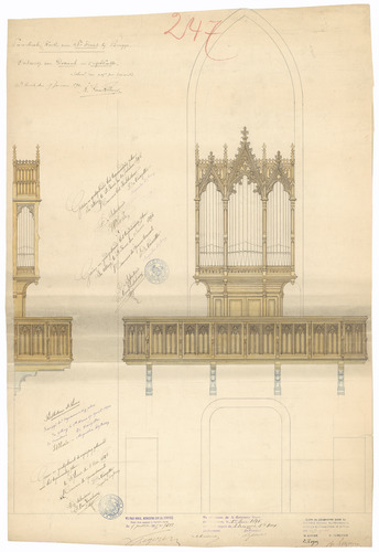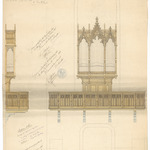 Opschrift: Parochiale Kerke van Ste. Kruis bij Brugge. Ontwerp van Doxaal en Orgelkasse, Omschrijving plan: ontwerp doksaal en orgelkast Datum KCML: 01/06/1895 Archiefnummer: W0309