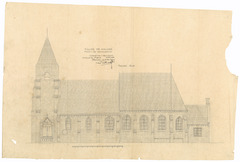 Opschrift: Eglise de Houcke. Projet de restauration Omschrijving plan: opstand zijgevel 2 Datum KCML: deze informatie wordt niet vermeld op het archiefstuk Archiefnummer: W0337