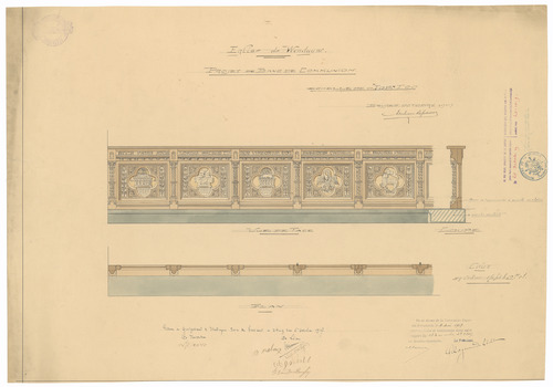 Opschrift: Eglise de Wenduyne. Projet de banc de communion Omschrijving plan: ontwerp communiebank Datum KCML: 8-5-1909 Archiefnummer: W0391
