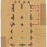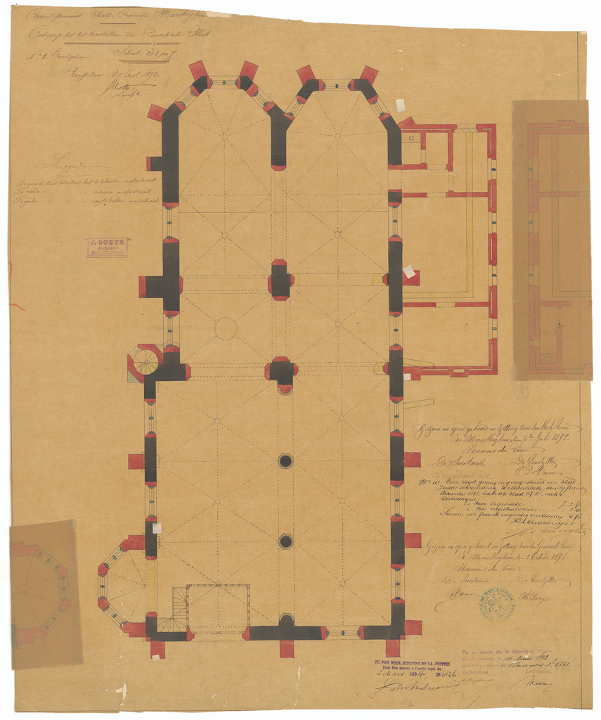 Opschrift: Arrondissement Thielt - Gemeente Marckeghem. Ontwerp tot het herstellen der Parochiale Kerk Omschrijving plan: plattegrond niveau 0 Datum KCML: 11/03/1893 Archiefnummer: W0393_02