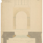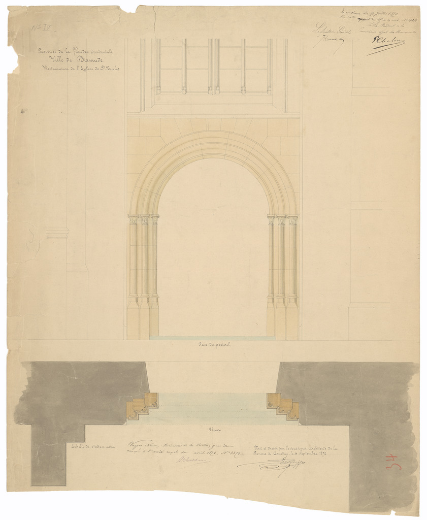 Opschrift: Province de la flandre occidentale. Ville de Dixmude. Restauration de l'Eglise de St. Nicolas. Omschrijving plan: detailtekening portaal Datum KCML: 19/07/1873 Archiefnummer: W0408