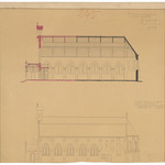 Opschrift: Ontwerp voor het vergrooten der St. Pieterskerk te Adinkerke-Panne Omschrijving plan: opstand zijgevel en langsdoorsnede Datum KCML: 13/08/1891 Archiefnummer: W0403