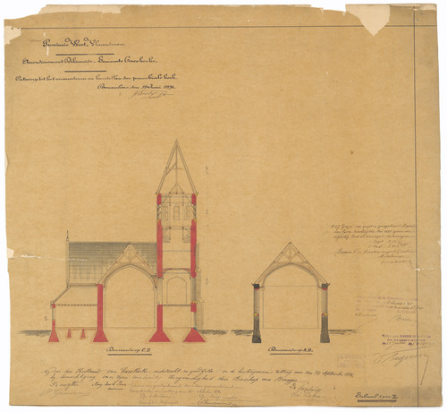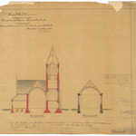 Opschrift: Provincie West-Vlaanderen. Arrondissement Diksmuide. Gemeente Caeskerke. Ontwerp tot het vermeerderen en herstellen der parochiale kerk. Omschrijving plan: dwarsdoorsnede Datum KCML: 09/01/1897 Archiefnummer: W0449