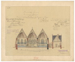 Opschrift: Provincie West-Vlaanderen. Gemeente Pervijse. Ontwerp tot vergrooting en herstelling der kerk en bouwing van nieuwe sakristyen Omschrijving plan: dwarsdoorsnede Datum KCML: 19/03/1892 Archiefnummer: W0474