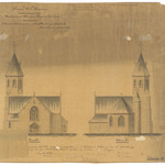 Opschrift: Provincie West-Vlaanderen. Arrondissement Diksmuide. Gemeente Caeskerke. Ontwerp tot het vermeerderen en herstellen der parochiale kerk. Omschrijving plan: opstand voor- en achtergevel Datum KCML: 09/01/1897 Archiefnummer: W0447_02