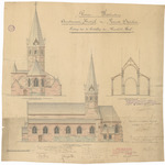 Opschrift: Provincie Westvlaanderen. Arrondissement Kortrijk. Gemeente Bavichove. Ontwerp tot de herstelling der Parochiale Kerk. Omschrijving plan: opstand achter- en zijgevel, dwarsdoorsnede Datum KCML: 30/04/1898 Archiefnummer: W0527