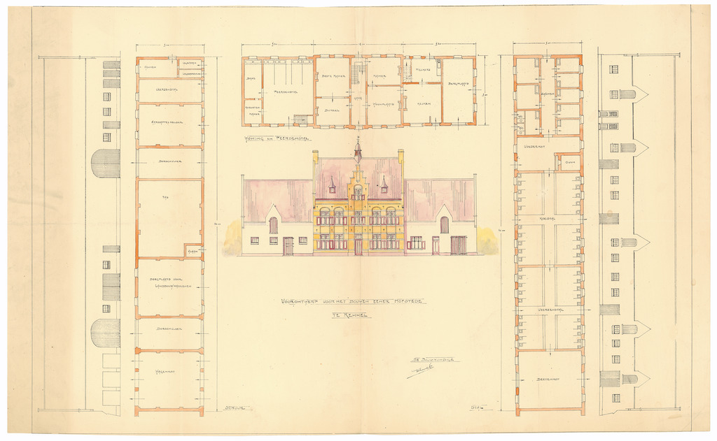 Opschrift: Voorontwerp voor het bouwen eener hofstede te Kemmel Omschrijving plan: ontwerp hofstede Datum KCML: deze informatie wordt niet vermeld op het archiefstuk Archiefnummer: W0551