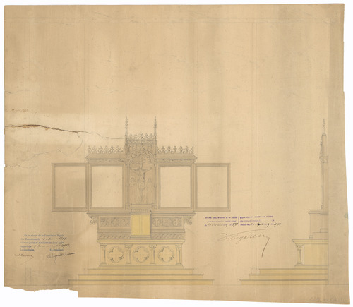 Opschrift: deze informatie wordt niet vermeld op het archiefstuk Omschrijving plan: ontwerp altaar Datum KCML: 04/03/1899 Archiefnummer: W0591