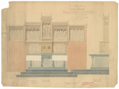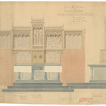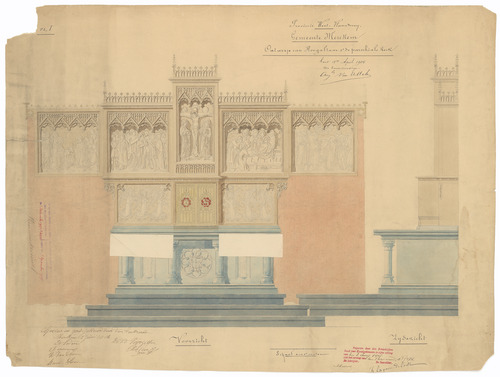 Opschrift: Provincie West-Vlaanderen. Gemeente Merckem. Ontwerp van Hoogaltaar v[oo]r de parochiale kerk. Omschrijving plan: ontwerp hoogaltaar Datum KCML: 3-6-1905 Archiefnummer: W0586_02