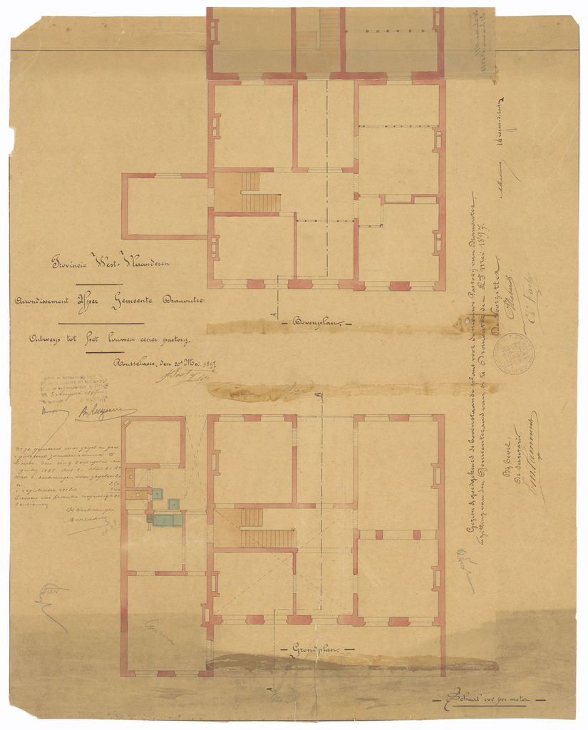 Opschrift: Provincie West-Vlaanderen. Arrondissement Yper. Gemeente Dranoutre. Ontwerp tot het bouwen eener pastory. Omschrijving plan: plattegrond niveau 0 Datum KCML: 24/07/1897 Archiefnummer: W0548_02