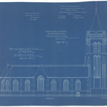 Opschrift: Provincie West-Vlaanderen. Gemeente Merckem. Herbouwing der parochiale kerk. Omschrijving plan: opstand N-gevel Datum KCML: 15/07/1922 Archiefnummer: W0582