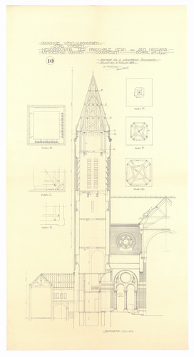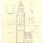 Opschrift: Provincie West-Vlaanderen. Stad Yperen. Heropbouwing der parochiale kerk van Sint Nikolaas. Uitvoeringsplannen Omschrijving plan: ontwerp toren Datum KCML: deze informatie wordt niet vermeld op het archiefstuk Archiefnummer: W0699