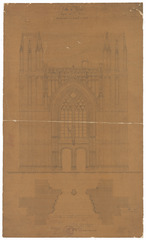 Opschrift: Ville d'Ypres. Flandre Occidentale. Eglise St. Martin. Restauration du portail principal. Omschrijving plan: plattegrond en opstand voorgevel hoofdportaal Datum KCML: 15/10/1887 Archiefnummer: W0663