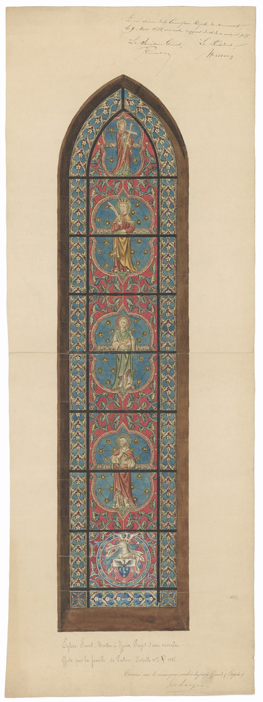 Opschrift: Eglise Saint Martin à Ypres. Projet d'une verrière offerte par la famille de Patin. Omschrijving plan: ontwerp glasraam Datum KCML: 09/05/1883 Archiefnummer: W0662