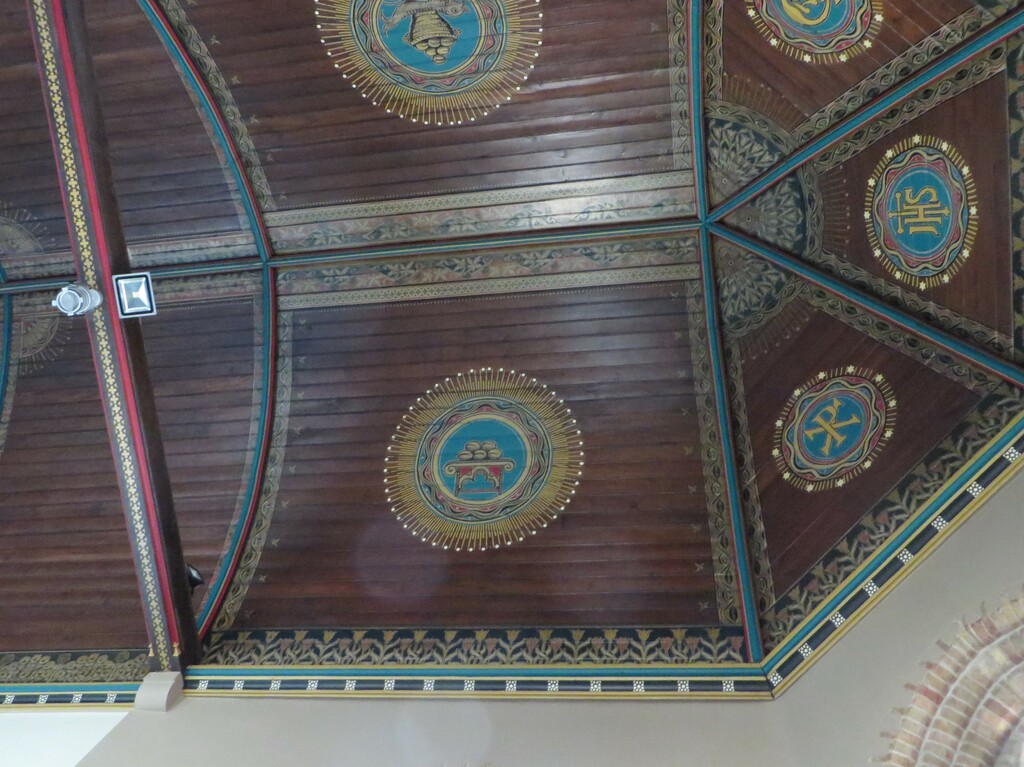 De afbeelding 'Heuvelland Westouter Sint-Eligiuskerk gewelf met sjabloonschildering' gemaakt door Vanneste, Pol wordt ter beschikking gesteld door Agentschap Onroerend Erfgoed (AOE) onder de volgende voorwaarden: Modellicentie voor gratis hergebruik, Naamsvermelding-GelijkDelen 4.0 Internationaal.