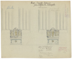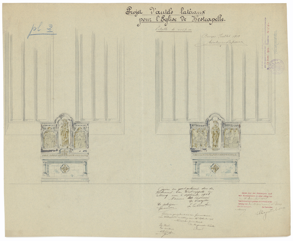 Opschrift: Projet d'autels latéraux pour l'Eglise de Westcapelle. Omschrijving plan: ontwerp zijaltaren Datum KCML: 26/12/1908 Archiefnummer: W0901