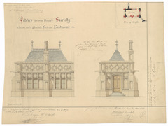 Drager: papier Techniek: pen, opgehoogd met aquarel Afmetingen (h x b in mm): 366 x 486 mm Schaal: 1/50 en 1/200