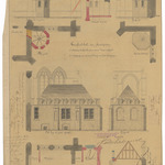 Opschrift: Parochiale kerk van Handzame. Ontwerp tot het bouwen eener doopvontkapel. Ontwerp voor de verandering van het magazijn Omschrijving plan: plattegrond, gevelopstanden en doorsneden Datum KCML: 26/09/1891 Archiefnummer: W0995