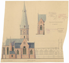 Opschrift: Ontwerp tot het voltrekken der parochiekerk van Couckelaere Omschrijving plan: opstand N-gevel Datum KCML: 13/07/1907 Archiefnummer: W0930