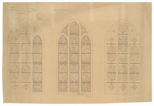 Opschrift: Kerk van Westkapelle Omschrijving plan: ontwerp glasramen Datum KCML: deze informatie wordt niet vermeld op het archiefstuk Archiefnummer: W0905