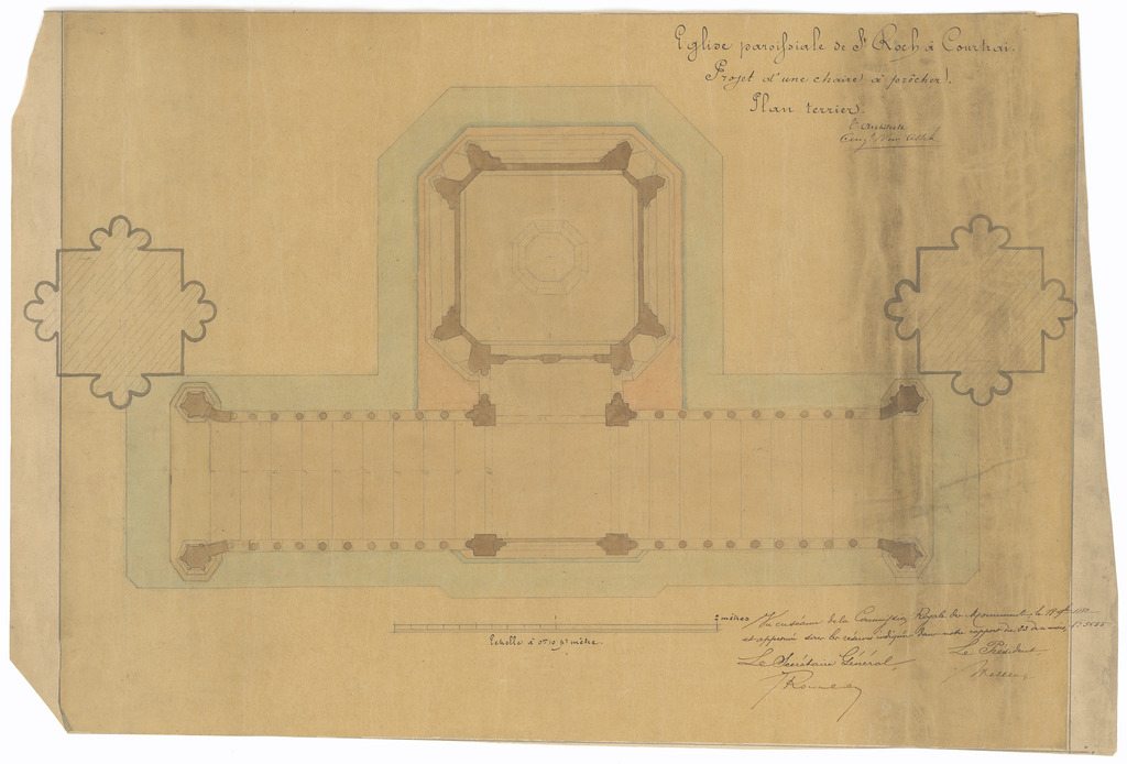 Opschrift: Eglise paroissiale de St. Roch à Courtrai. Projet d'une chaire à prêcher Omschrijving plan: plattegrond preekstoel Datum KCML: 18/11/1882 Archiefnummer: W1048