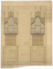 Opschrift: Eglise paroissiale de St. Roch à Courtrai. Projet du buffet d'orgue Omschrijving plan: ontwerp orgelkast Datum KCML: 01/10/1892 Archiefnummer: W1051