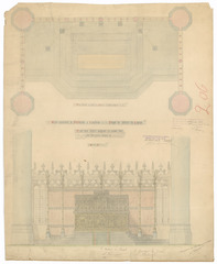 Opschrift: Eglise paroissiale de St. Martin à Courtrai. Projet de cloture du choeur. Projet pour l'autel-majeure en cuivre doré avec pierreries émaux etc. Omschrijving plan: plattegrond en vooraanzicht altaar Datum KCML: 12/12/1891 Archiefnummer: W1039