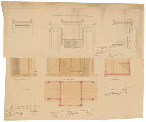 Opschrift: Eglise paroissiale de Rolleghem. Projet de Confessionnal Omschrijving plan: ontwerp biechtstoel (aangepast ontwerp) Datum KCML: 22/12/1906 Archiefnummer: W1083_02
