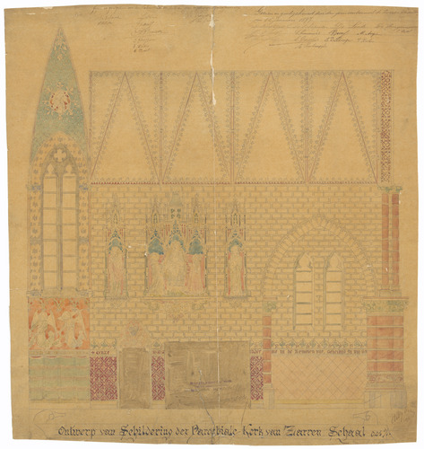 Opschrift: Ontwerp van Schildering der Parochiale Kerk van Zarren Omschrijving plan: ontwerp muurschildering Datum KCML: deze informatie wordt niet vermeld op het archiefstuk Archiefnummer: W1012