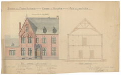 Opschrift: Province de la Flandre Occidentale. Commune de Bisseghem. Projet d'un presbytère. Omschrijving plan: opstand voorgevel en dwarsdoorsnede (aangepast ontwerp) Datum KCML: 21/01/1899 Archiefnummer: W1054_02