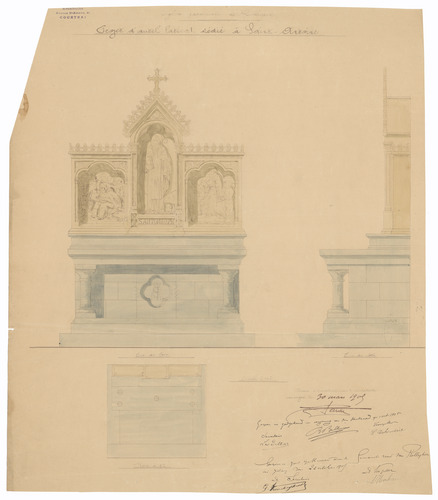 Opschrift: Eglise paroissiale de Rolleghem. Projet d'autel latéral dédié à Saint-Antoine. Omschrijving plan: ontwerp zijaltaar St. Antonius Datum KCML: 22/12/1906 Archiefnummer: W1081_02