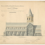 Opschrift: Province de la Flandre Occidentale - Arrondissement Courtrai. Commune de Rolleghem. Projet de restauration et de reconstruction partielle de la tour et de l'Eglise Paroissiale. Omschrijving plan: opstand zijgevel 1 Datum KCML: 21/03/1903 Archiefnummer: W1074