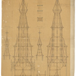 Opschrift: Plan d'ensemble de la charpente de la flèche du Campanille de la Tour de l'Eglise St. Martin à Courtrai Omschrijving plan: ontwerp torenspits en klokketorentje Datum KCML: 30/05/1874 Archiefnummer: W1032