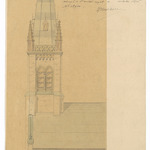 Opschrift: Eglise St. Roch Courtrai. Projet de Flèche Omschrijving plan: opstand zijgevel 1 Datum KCML: 02/09/1876 Archiefnummer: W1046
